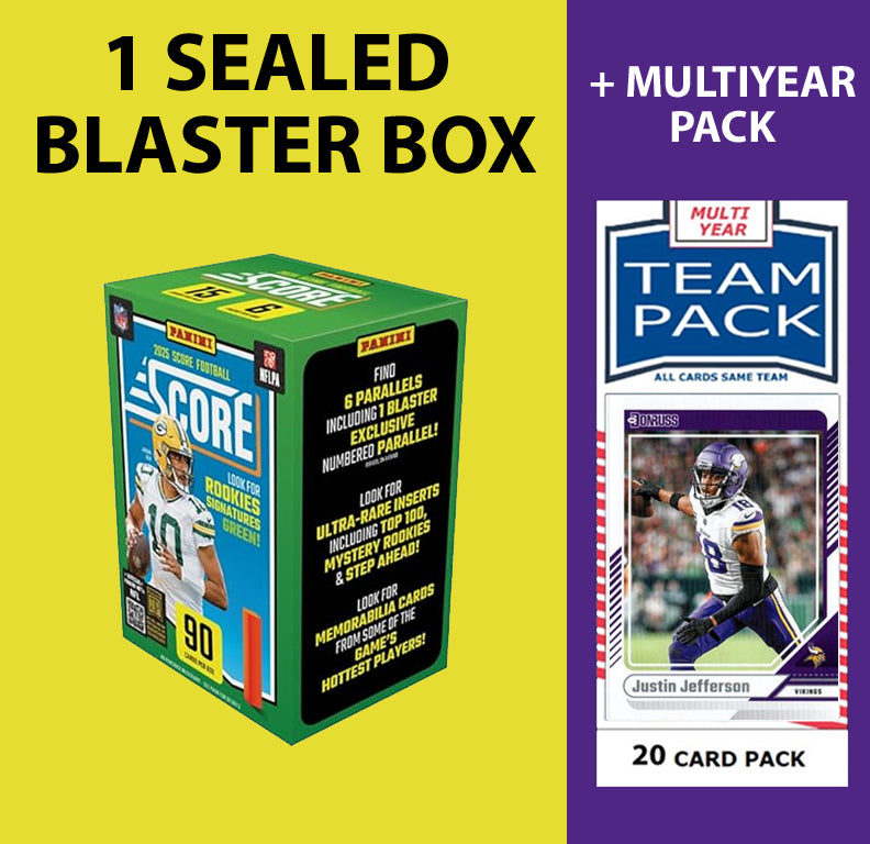 2025 SCORE Minnesota Vikings Gift Pack - Sealed Blaster Box + Multiyear Team Pack Justin Jefferson