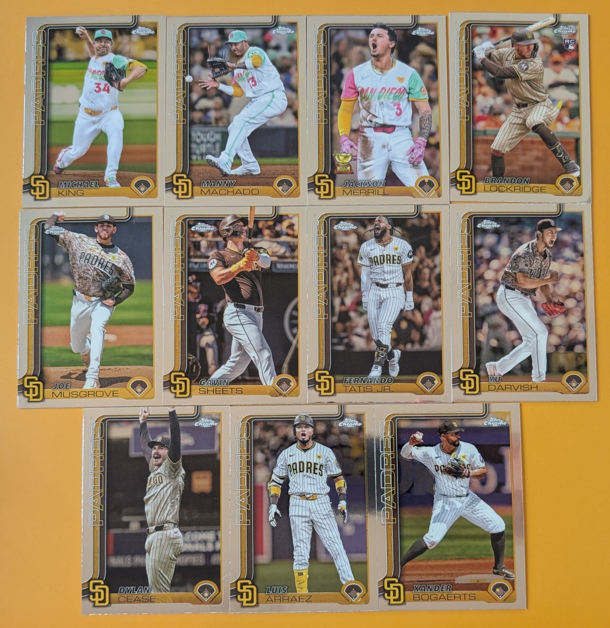 2025 Topps Chrome Baseball Team Set 11 San Diego Padres Jackson Merrill Tatis Darvish