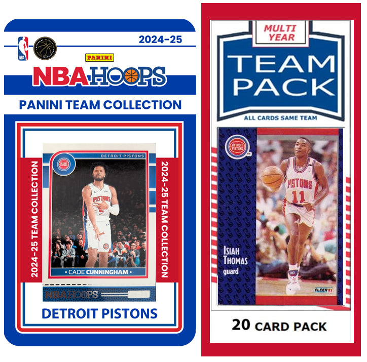 Detroit Pistons Multiyear Pack 20 Cards Isiah Thomas + 2024-25 HOOPS Team Set Cunningham