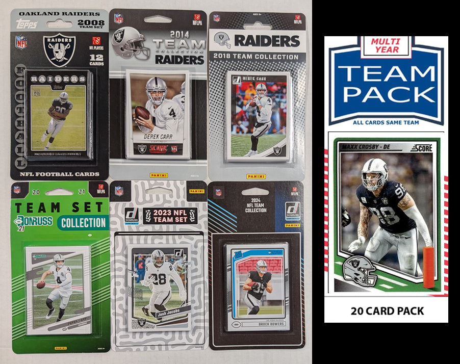 Donruss Las Vegas Raiders Team Sets 2024 2023 2021 2018 2014 2008 + Multiyear Pack 2025 Maxx Crosby