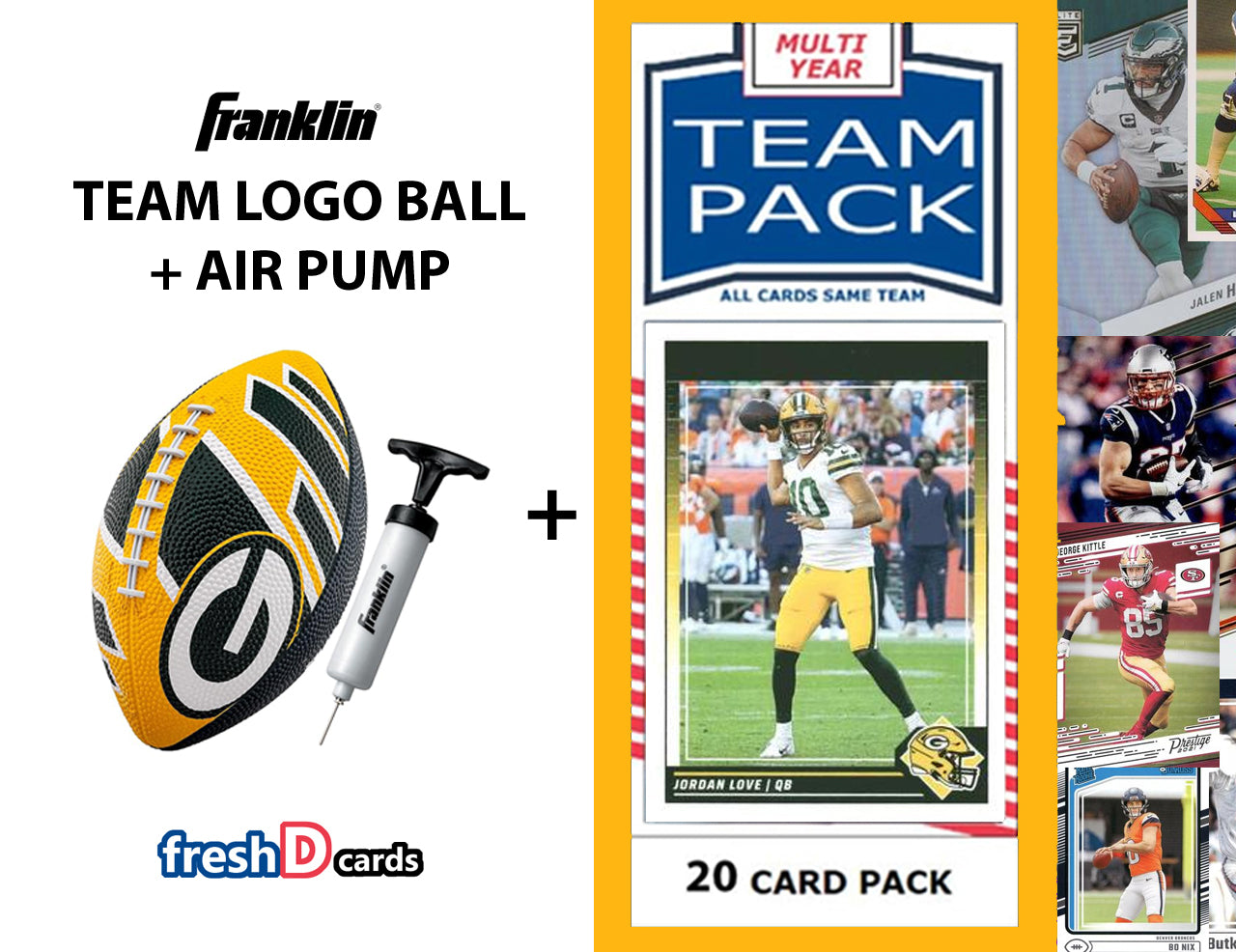 Franklin Sports NFL Team Football Green Bay Packers + Cards - Rubber Youth Mini 8.5" Pump Jordan Love