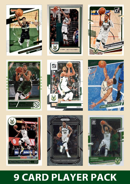 Giannis Antetokounmpo 9 Card Player Pack 2023-24 Hoops Donruss Milwaukee Bucks