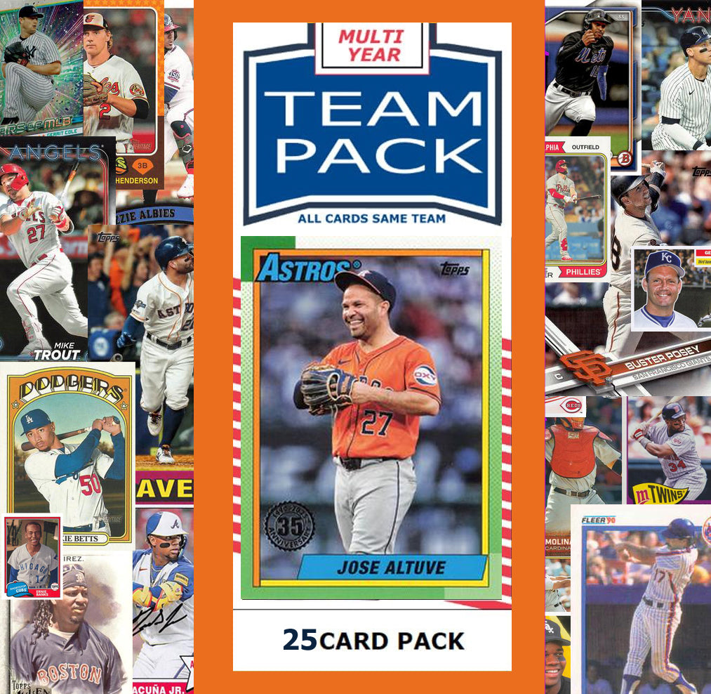 25 Card Team Pack containing cards from different years./brands (Topps, Bowman, Stadium Club, Chrome, Archives, Heritage) - will be a mix of stars, RCS and common players