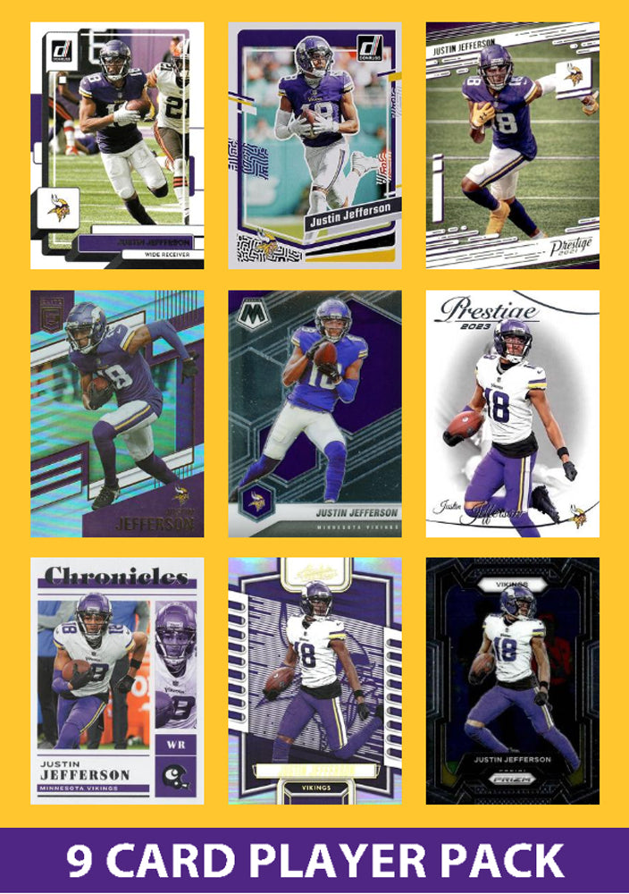 Justin Jefferson 9 Card Player Pack 2025 2024 2023 Donruss Minnesota Vikings
