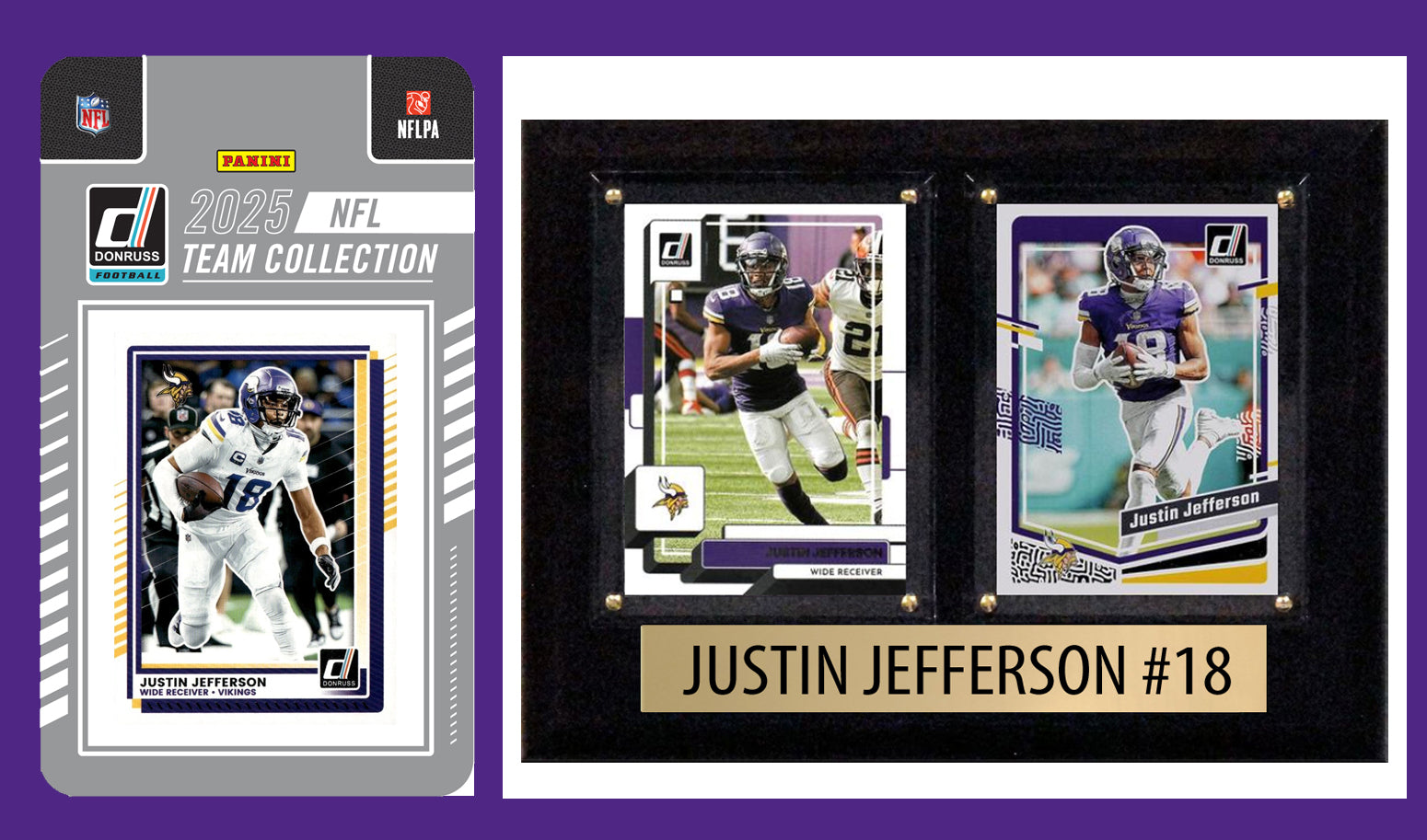 Minnesota Vikings Fan Plaque Pack Justin Jefferson + 2025 Donruss Team Set