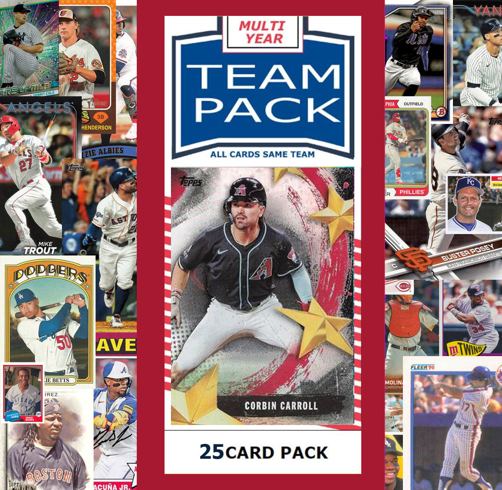 - 25 Card Multiyear Team Pack containing cards from different years./brands (Topps, Bowman, Stadium Club, Chrome, Archives, Heritage) - will be a mix of stars, RCS and common players