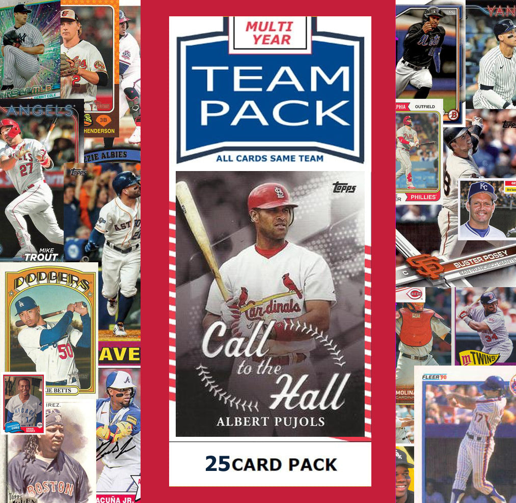 - 25 Card Multiyear Team Pack containing cards from just the St Louis Cardinals