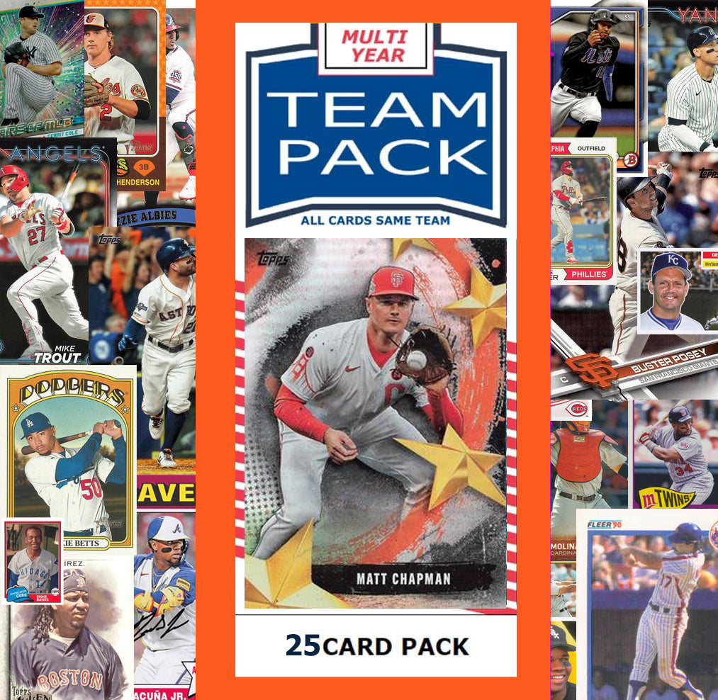 - 25 Card Team Pack containing cards from different years./brands (Topps, Bowman, Stadium Club, Chrome, Archives, Heritage) - will be a mix of stars, RCS and common players