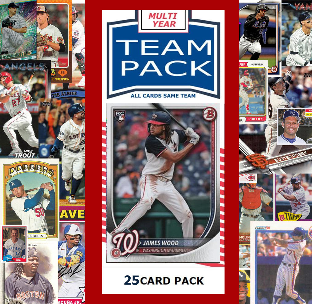 - 25 Card Team Pack containing cards from different years./brands (Topps, Bowman, Stadium Club, Chrome, Archives, Heritage) - will be a mix of stars, RCS and common players